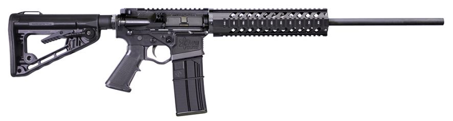 This Omni Hybrid 410 features an 18.5 barrel with an optic-ready custom 13 keymod rail, and uses an M4-style stock. It has a black finish and includes one 5-round American Tactical-made polymer magazine.
