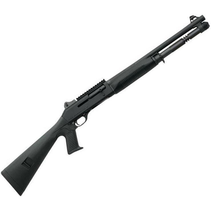 Benelli M4 Tactical Anodized Black 12 Gauge 3in Semi Automatic Shotgun – 18.5in – Originally designed in 1998 for the U.S. Marine Corps, the M4 (M1014) was extensively tested at the Aberdeen Proving Ground in Maryland. It proved totally reliable for safety, function, and performance. Battle-proven reliability Picatinny rail for mounting scopes, sights, and optics Ghost-ring sights for quick target acquisition