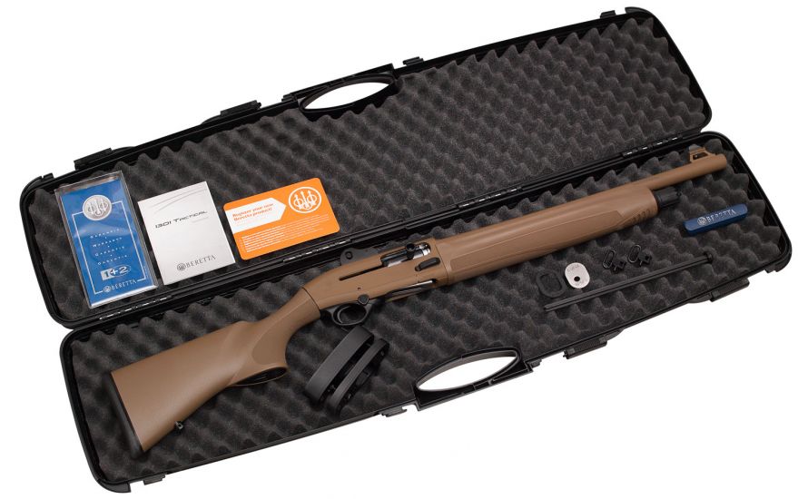 Berettas 1301 Tactical gas operated semi-automatic shotgun is designed for law-enforcement and home-defense. It is engineered to be ultra-reliable, easy to use, has all the features that a modern tactical shotgun should offer, and a compact size, making it ideal for negotiating tight spaces. The integrated Blink gas operating system, featuring a cross tube gas piston, allows the 1301 Tactical to cycle 36 percent faster than any other shotgun on the market. The 1301 Tactical features an oversized charging handle, large textured bolt release and an oversized reversible safety button. Its aggressive checkering on the fore-end and stock makes it easy to gain a secure grip even while wearing gloves. The stock is also adjustable for length of pull with provided spacers, and the drop and cast are adjustable as well. Its barrel features a ghost-ring rear with an interchangeable front sight, and interchangeable choke system. Included is an OptimaBore, HP Improved Cylinder (flush configuration). The receiver is constructed of an aircraft-grade aluminum with a MIL-STD 1913 Picatinny rail, making it a snap to add optics without modification to the shotgun.