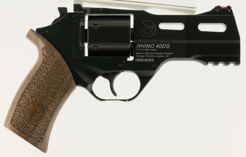 The Rhino is the most innovative development in revolver technology in decades. It fires from the bottom of the cylinder rather than the top which dramatically reduces muzzle rise and recoil felt by lowering the axis of the bore almost to the palm of the shooters hand. An aluminum alloy frame and barrel shroud makes the Rhino lightweight and easy to carry. The snag resistant hammer is actually a cocking device because of the Rhinos innovative completely enclosed firing mechanism which can be fired either single or double action. A cocked indicator is clearly visible to indicate the internal hammer status. Another innovation is the hexagonal cylinder which keeps the revolvers width to a minimum. Included is a fiber optic front sight.