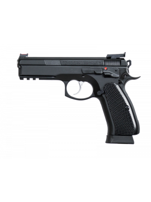 The Target II is a competition-ready Pre-B style SP-01 Shadow, featuring a CZ Custom trigger job with the new short reset single-action trigger, fully-adjustable rear sight, fiber optic front sight, stainless steel guide rod, lighter springs for competition (11 lb recoil and 13 lb main springs), extended magazine release, drop-free magazines and checkered aluminum grips. Created by champion shooter Angus Hobdell’s CZ Custom Shop to have trigger pulls of 3.0-4.0 lbs in SA and 7.5-8.5 lbs in DA.