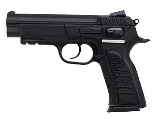 Caliber: 10mm – Capacity: 15rds – Barrel: 4.5 – Action: DA/SA – Frame: Black Polymer – Slide: Steel – Finish: Blued – Sights: Fixed