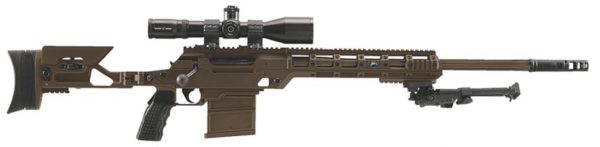 Modern modular and multi-caliber the Ballista represents the future of precision rifle systems. Designed to deliver surgically precise fire the rifle can be configured in less than two minutes to any of three available chamberings (.338 Lapua Mag. .300 Win. Mag. and .308 Win.). Featuring repeatable accuracy with all chamberings the Ballista employs a high strength vibration-isolated aluminum alloy receiver with a top mounted MIL-STD 1913 rail. In addition the rifle features multiple rail segments for the addition of accessories. Fluted barrels measure 26-inches and the bores have polygonal rifling with a right-hand constant twist rate. A fully adjustable trigger (for single or two-stage release between 3 and 5 pounds) and adaptable ambidextrous folding stock allow the shooter to configure the rifle for enhanced performance. For those who want the future of precision rifle performance today look no further than the Ballista multi-caliber system. – Caliber: .338 Lapua Mag. (conversion kits available in .300 Win. Mag. and .308 Win.) – Barrel: 26 – Operation: Bolt-action – Overall Length: 50.75 (extended); 49.5 (collapsed); 39 (folded) – Height: 7.8 – Weight: 15.1 lbs. (empty) – Magazine: 5 or 8 rds. (.338 Lapua Mag.); 6 or 10 rds. (.300 Win. Mag.); 8 or 15 rds. (.308 Win.)