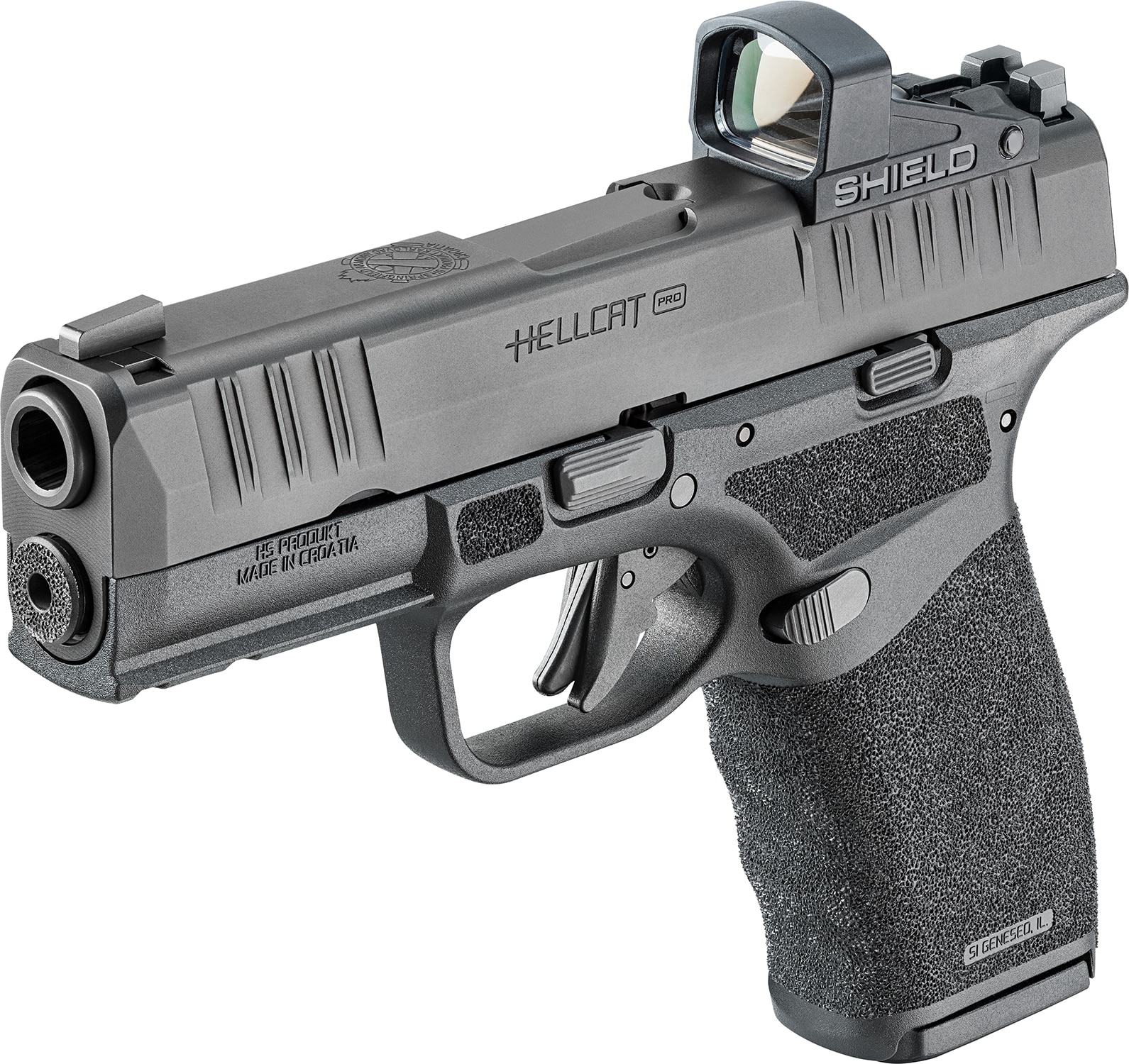 Combining the performance of a larger handgun with class-leading concealability and capacity, the 9mm Hellcat® Pro offers 15+1 capacity in a compact pistol with a smaller footprint than any other gun in its class. Packaged with the excellent Shield Optics SMSc micro red dot, the pistol offers all the advantages of an optics-equipped pistol along with excellent co-witnessing U-Dot tritium/luminescent iron sights. Equipped with a versatile accessory rail and hammer forged barrel, this exceptional everyday carry pistol delivers the perfect balance.
