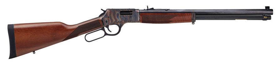 This Big Boy Color Case Hardened model is chambered in 357 Magnum/38 Spl and features a case hardened receiver finish, American Walnut stock, a blued octagon steel barrel, and adjustable semi-buckhorn rear and brass bead front sights.
