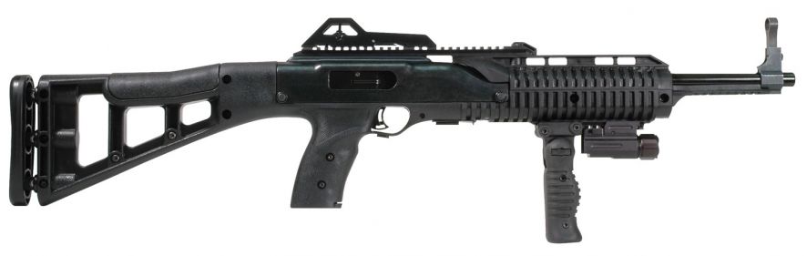 Hi-Points 995TS 9mm carbine has an all-weather, polymer skeletonized stock with an internal recoil buffer, multiple Weaver-style rails, a sling, swivels, and scope base. It has a quick on/off thumb safety, grip-mounted clip release, last round lock open feature, and fully adjustable sights (post front, peep rear). The 995TS carbine has a 16.5 barrel for an OAL of 31. Hi-Point produces affordable, American-made firearms featuring 100% American parts and assembly. Hi-Point carbines are +P rated and accept all factory ammunition.