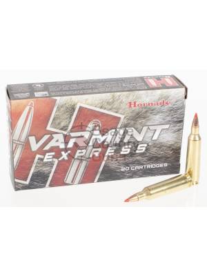 Hornady® Varmint Express® ammunition is designed around the hard-hitting performance of our famous V-MAX® bullet. Polymer tipped V-MAX® bullets deliver match accuracy, high ballistic coefficients, wind defying trajectories, and rapid fragmentation upon contact. Each Varmint Express® offering is loaded with high quality cases and carefully selected propellant and primers that are chosen to provide the best performance in each individual load.