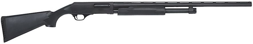 This 12 gauge model has a 28 barrel and a synthetic stock.