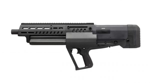 The Tavor TS12 12 gauge shotgun is a gas regulated bullpup shotgun with an innovative design that feeds from one of three (3) individual magazines which can hold four 3 inch shotgun shells or five 2 ¾ inch shotgun shells each. This means that the potential overall capacity from all three (3) individual magazines is 15 rounds plus one additional round in the chamber. The TS12 has a unique feature that automatically loads a round in the chamber once the subsequent loaded magazine is rotated into position. It can be fed and unloaded from either side.