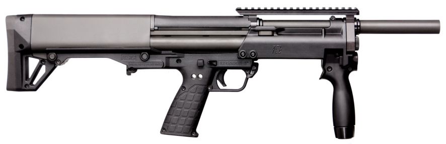 This KSG NR shotgun features a cross-bolt safety, a 420 lumen Kel-Tec light built in the forend, an 18.5 cylinder bore barrel, and a dual tube magazine.
