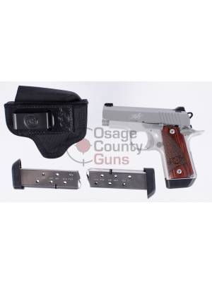 With a beautiful Stainless/Alloy slide and frame finish and rosewood grips, the Micro 380 RTC has mild recoil, a smooth trigger pull and the intuitive operation of a 1911. Micro slides are made to the tightest allowable tolerances, with barrels machined from stainless steel for superior resistance to moisture. All Micro frames are shaped from the finest aluminum for integrity and strength. In many respects a miniature 1911, among the most important Micro design advantages is a single action trigger with the kind of short, smooth pull that ensures accuracy and builds confidence. The thumb safety, slide release and magazine release are pure 1911 as well. Standard features include a lowered and flared ejection port for flawless ejection and a beveled magazine well for fast, positive loading. Sights are steel – not plastic – and mounted in machined dovetails for additional integrity.