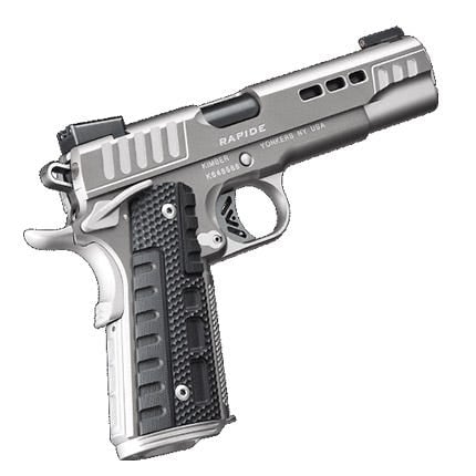 The Kimber Rapide Black Ice 1911 handgun delivers strength and durability in a lightweight and rugged design. Features include day/night sights with high contrast orange ring front sight, G10 WavZ grips, stepped cocking serrations, and more. It comes chambered in .45 ACP with a 5 inch barrel and 8 round capacity. Get the best 1911 handguns for sale online from GrabAGun today!