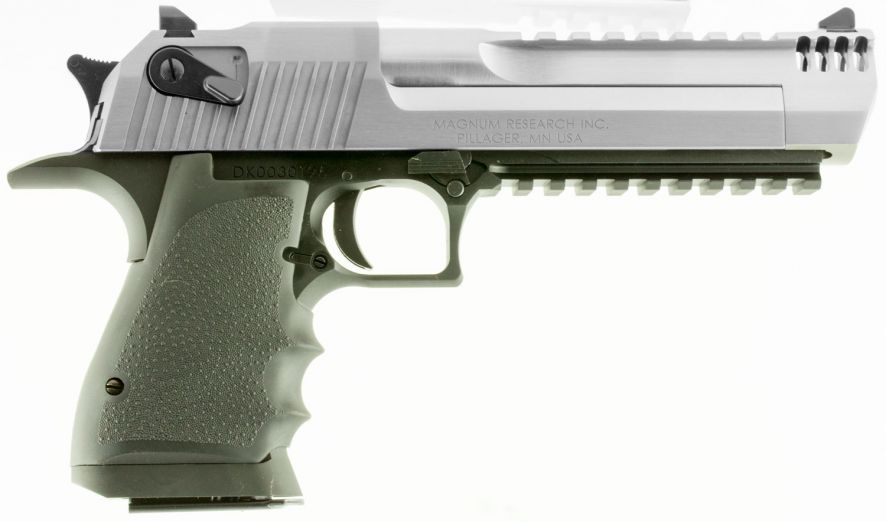 Magnum Researchs Desert Eagle Mark XIX 357 Magnum is a rotating bolt, semi-automatic pistol with a black finish and a stainless steel slide/barrel. It is construction of the latest CNC machine technology providing exacting specifications with tight tolerances creating a work of art in a precision firearm. This Desert Eagle features a Weaver style accessory rail for optics and an integral muzzle brake.