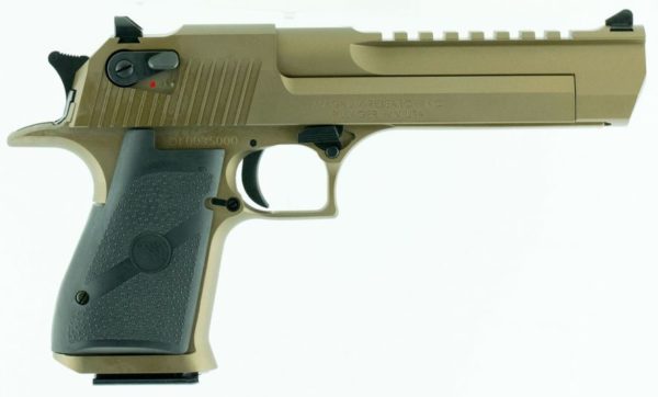 Magnum Researchs Desert Eagle Mark XIX .50 AE is a gas-operated, semi-automatic pistol with a burnt bronze finis. It is construction of the latest CNC machine technology providing exacting specifications with tight tolerances creating a work of art in a precision firearm. This Desert Eagle features a grip anatomically formed and provides an ideal hand seating angle for two-handed shooting allowing for comfortable, rapid and accurate firing. An additional feature includes a Weaver style accessory rail that easily allows for aftermarket optics and scope rings.