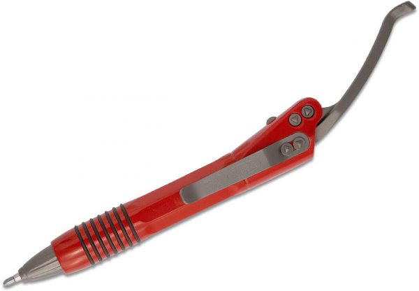 The Siphon II, like the original Siphon is a unique folding lever-action pen and a stylish writing instrument from Microtech. Pull the lever up and the pen tip is revealed. The Siphon II has a slightly longer body with o-ring grips and this model has a Glossy Red stainless steel construction. It measures 3.9″ with lever down and includes a pocket clip with model name, date of production, and serial number.