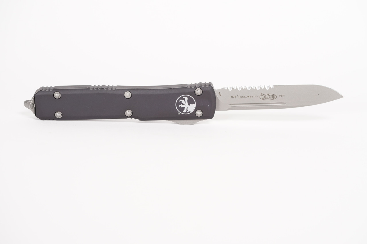 As the flagship model of the Microtech® O.T.F. lineup, the Ultratech® sets the standard for Out-The-Front technology. Proprietary design allows the firing spring to be at rest in both the open and closed positions, drastically reducing wear on the internal firing mechanisms. The contoured chassis handle provides a lighter and more ergonomic feel and comes in a smooth, flat finish.