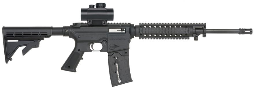 These Mossberg Flat Top Tactical 22 provide the look, feel and excitement of the AR platform, built around their proven and dependable 22 long rifle autoloader. Featuring an 16.25 blued barrel with a 1:16 RH twist and removeable muzzle brake. The magazine is detachable and has a capacity of 10 or 25 rounds. The 25 round models comes with an accessory magazine loading cap. The stocks are available in fixed or adjustable. The adjustable model will adjust nearly 4 to accommodate smaller frame shooters. All models feature a Picatinny quad rail forend for customizing your rifle with an endless array of available tactical accessories.
