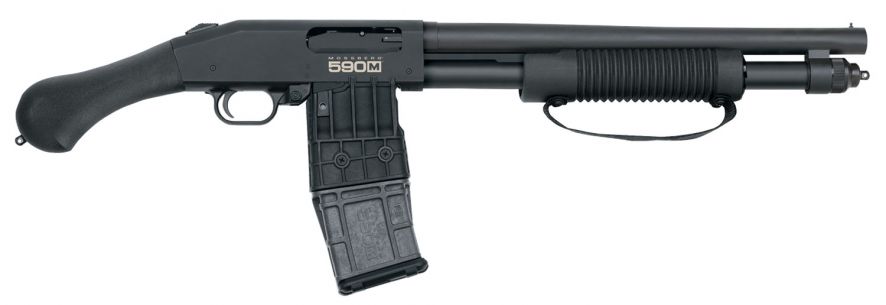 Mossberg 50208 590M Shockwave Mag-Fed Blued Pump 12 Gauge 15 2.75 10+1 Black Fixed Synthetic Raptor Grip Stock