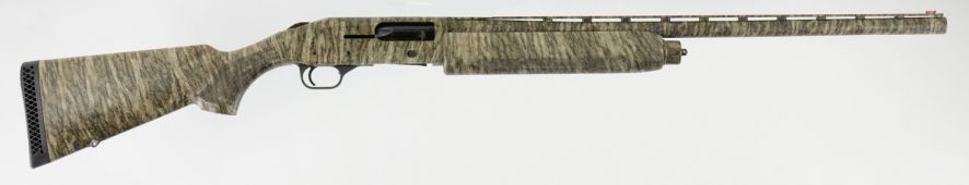 This model features a 26 vent rib barrel, interchangeable Accu-Set choke tubes, X-Factor Ported XX-Full turkey tube, a full Mossy Oak New Bottomland finish, and a fiber optic front sight. It also has a mag cap and rear sling swivel studs, drilled/tapped receiver, and top-mounted ambidextrous safety.