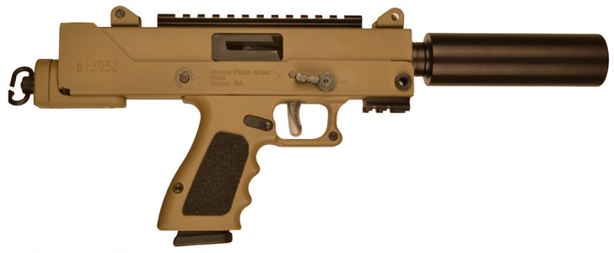 This is our new 9mm Pistol based on the 30sst but includes a fully machined aluminum pistol grip that accepts Glock Magazines*. The grip is our most ergonomically designed grip system incorporating a Solidworks designed profile allowing the use of standard Glock style magazines with a low profile magazine release and Decal Grip grip panels. The pistol also includes additional upgraded features such as adjustable front and rear sights L-Bracket with QD Sling plate plus Cerakote Flat Dark Earth coating. This is also a multi caliber pistol. Utilizing a change of the bolt and barrel the firearm can be modified to fire 40 cal & 357 Sig. With a bolt barrel and pistol grip change the 30DMG will fire 5.7x28mm. 45 acp is in development. – Features: – Cal: 9mm – Barrel Length: 5.5? – Threads- 3/4-10 – Side Cocker – Scope Mount – Adjustable Front and Rear Sights – QD Plate for Single Point Sling System – Accepts Standard Glock Style High Capacity Magazines (1 Mag Included) – Cerakote: Flat Dark Earth – Decal Grip Grip Panels – Lower Picatinny Rail for Flashlight or Laser Systems – Hammer with Disconnect plus original Hammer – MPA Polymer Case