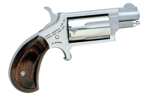The North American Arms 22 Magnum is a five-shot mini revolver chambered in 22 Mag. It features a stainless finish and fixed half-moon sights while the half-way notch cylinder helps guard against accidental discharge. Dependable compact and lightweight the 22 Magnum makes a suitable revolver for self-defense.