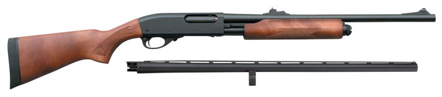 This Model 870 Express combo features a receiver milled from a solid billet of steel for maximum strength and reliability. Appropriately dressed for the hunt and not for the wall, each shotgun sports non-reflective, black matte metalwork, a satin finish wood laminate stock, one 28 vent rib barrel with rifle sights, and one 18.5 plain bead sight barrel. Model 870 shotguns feature twin action bars for smooth, reliable non-binding action and a receiver machined from a solid block of hardened steel for unmatched durability.