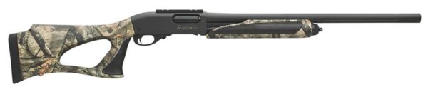 This 12-gauge SuperSlug shotgun has a ShurShot pistol grip stock and forend with rubberized overmolding at grip areas and a SuperCell recoil pad. To accommodate slugs while providing expert control, the barrel is pinned to the receiver. This gun features an extra heavy, 25.5 barrel, 1 in diameter with longitudinal flutes for reduced weight. There are 6 Parabolic Ultragon rifling grooves with a 1:35 twist. It has built-in swivel studs and is drilled/tapped for scope mounts with a Weaver rail included.