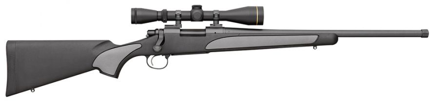 Remingtons Model 700 SPS Threaded Barrel is adapted for silencers, flash hiders muzzle brakes and more. The 20 blued carbon steel barrel has 5/8×24 tpi. The ergonomically designed synthetic stock has rubberized overmold grip panels. It has a hinged floorplate magazine and is drilled and tapped for scope mounts. The 700 SPS features the X-Mark Pro externally adjustable trigger system.