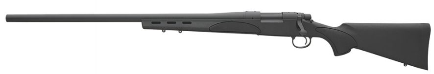 The Remington Model 700 SPS Varmint rifle is built on the Model 700 action, which is the most solid, dependable, and trusted in existence. The 26 heavy-contour barrel is perfectly matched to its high-velocity caliber offerings, and the ergonomically-designed black synthetic stock has a vented beavertail forend for enhanced grip, reduced weight, and better heat dissipation. The barrel and receiver have a non-reflective matte blued finish, and this model features a hinged floorplate magazine, sling swivel studs, and a drilled and tapped receiver.