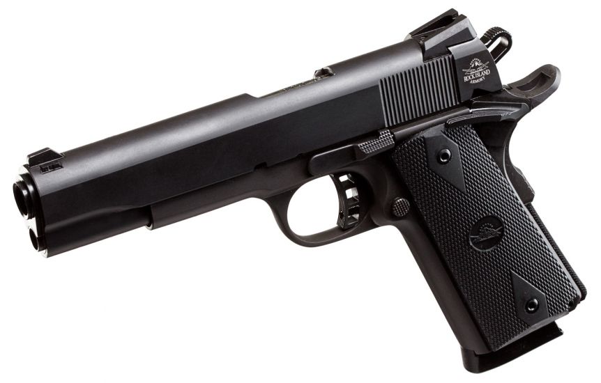 The Rock Standard has a 5 button rifled barrel supported by a full length guide rod. The smooth, angled, snag-free style allows for quick draw in fast need situations. Includes a low profile angled rear sight along with skeletonized hammer and trigger with adjustable over travel stop and ambidextrous safety standard in the Rock series.