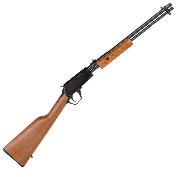 Rossi Gallery Hardwood Pump Action Rifle – 22 Long Rifle – 18in – The Gallery rifle from Rossi features buckhorn sights, cross-bolt safety, and a black polished finish.