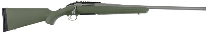 Rugers American Rifle offers minute-of-angle accuracy that can make every hunt a success. The one-piece, three-lug bolt with 70 degree throw provides ample scope clearance and utilizes a full diameter bolt body and dual cocking cams for smooth, easy cycling. Its patent-pending Power Bedding, integral bedding block system positively locates the receiver and free-floats the barrel for outstanding accuracy. The ergonomic, lightweight synthetic stock with soft rubber buttpad is designed for quick, easy handling and blends a classic look with modern forend contouring and grip serrations. The American Rifle also has a Ruger Marksman adjustable trigger, cold hammer-forged barrel, and a tang safety.