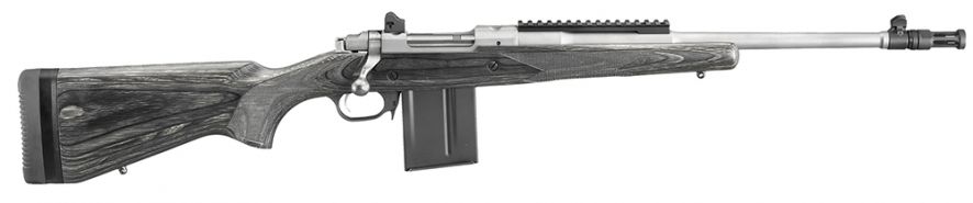 Rugers Gunsite Scout Rifle is developed with Gunsite, and is Gunsite Approved and features the Gunsite name rollmarked on the receiver. It has a forward-mounted Picatinny rail which allows for the mounting of modern optics and a built-in, accurate sighting system with ghost ring adjustable rear aperture sight and a non-glare, blade front sight. Patented integral scope mounts, are machined directly on the solid-steel receiver which provides a stable mounting surface. The non-rotating, Mauser-type controlled round feed extractor features a fixed blade-type ejector that positively ejects the empty cases as the bolt is moved fully rearward. The Gunsite Scout Rifle also has a free-floated, cold hammer-forged barrel with ultra-precise rifling, three-position safety, sling swivel studs, detachable box magazine with push-forward magazine release, and a soft rubber buttpad with buttpad spacers. Included are scope rings and three .5 spacers.
