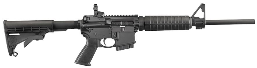 The Ruger AR-556 Model 8502 is chambered in 5.56 NATO with M4 feed ramps provide improved operational reliability. The heavy contour, cold hammer-forged barrel has ultra-precise rifling for exceptional accuracy, longevity, and easy cleaning. The 1:8 twist rate stabilizes bullets from 35-77 grains. Its upper receiver is forged from 7075-T6 aluminum and includes a forward assist, dust cover, and brass deflector. It is Type III hard coat anodized for maximum durability. It has a fixed M4-style black synthetic buttstock and Mil-Spec buffer tube. The front post sight is elevation adjustable and the A2 styleF height allows co-witness with many optics. The rear sight is a Ruger Rapid Deploy folding sight. It provides adjustment for windage and pairs with the front sight for a solid reliable aiming system. The milled gas block is located at a carbine-length (M4) position for improved balance and handling. It comes with an ergonomic pistol grip that features an extended trigger reach for more precise control over the single stage trigger providing durable and reliable fire control and is protected by an oversized trigger guard which gives plenty of room for use with gloves. This rifle comes with one metal 10-round magazine.