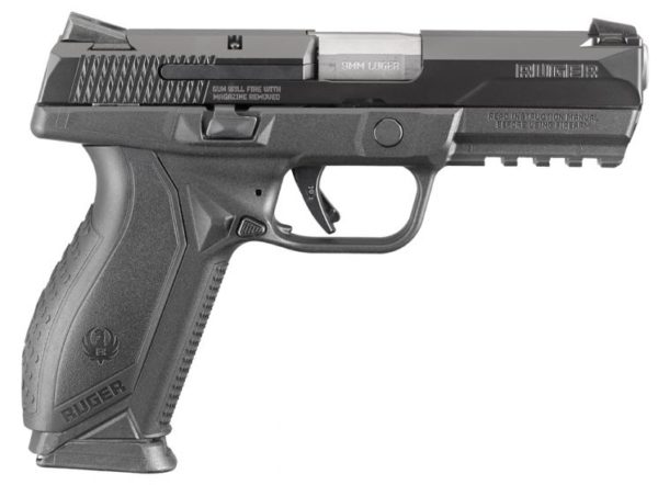 The Ruger American Pistol has a recoil-reducing barrel cam, low-mass slide, low center of gravity and low bore axis. The pre-tensioned striker system features a powerful striker spring for positive ignition without a heavier trigger pull. Its non-slip surfaces include functional slide serrations and grip/frame texturing for enhanced control. The American Pistol features a modular wraparound grip for adjusting palm swell and trigger reach to fit a wide range of hand sizes. Ergonomic grip modules lock in solidly and do not loosen. It has an ambidextrous slide stop and magazine release, Novak LoMount carry three-dot sights, MIL-STD-1913 Picatinny rail. Safety features include internal, automatic sear block system and integrated trigger safety. Includes two nickel-Teflon plated steel magazines; small, medium and large grip modules.
