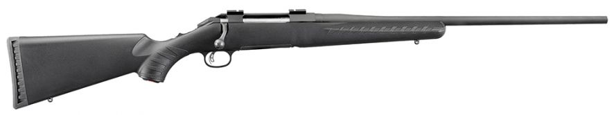 Rugers American Rifle offers minute-of-angle accuracy that can make every hunt a success. The one-piece, three-lug bolt with 70 degree throw provides ample scope clearance and utilizes a full diameter bolt body and dual cocking cams for smooth, easy cycling. Its patent-pending Power Bedding, integral bedding block system positively locates the receiver and free-floats the barrel for outstanding accuracy. The ergonomic, lightweight synthetic stock with soft rubber buttpad is designed for quick, easy handling and blends a classic look with modern forend contouring and grip serrations. The American Rifle also has a Ruger Marksman adjustable trigger, cold hammer-forged barrel, and a tang safety.