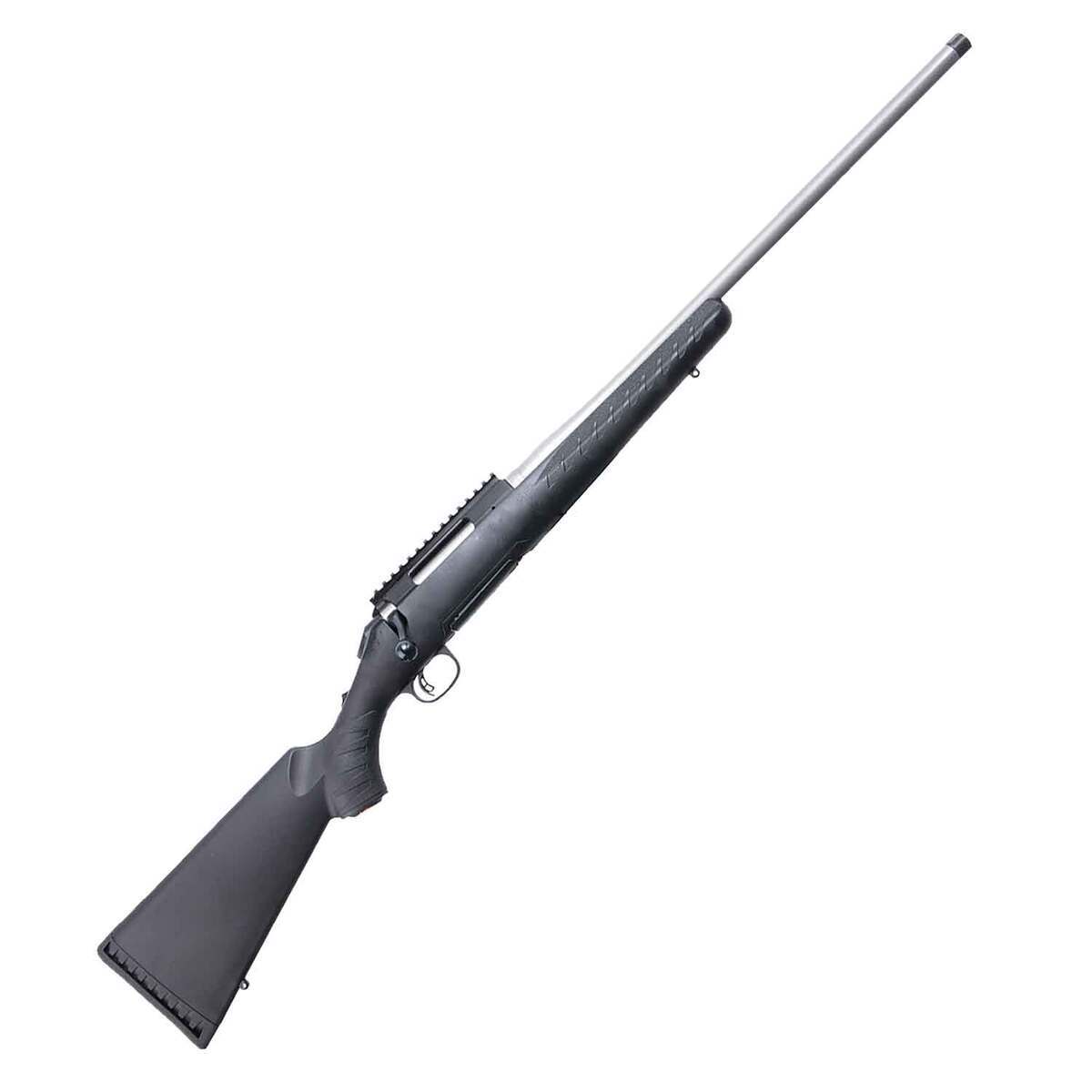 Ruger American Predator Stainless Bolt Action Rifle – 6.5 Creedmoor – 22in – The Ruger American Rifle Predator is built with innovative designs and modern materials to provide shooters with a practical and cost-effective bolt-action rifle, meant for serious long-range shooting. Ruger designed the Marksman Adjustable trigger for the American Rifle to be user adjustable for weight-of-pull. The Marksman trigger is light and crisp, allowing for precision shooting. The stock is constructed from rugged composite with grooves and texturizing on the pistol grip and fore-end, which provide a solid, non-slip grip in any hunting environment. The stock features molded-in Power Bedding recoil/bedding blocks to rigidly attach the barreled action to the stock and free-float the barrel. A soft rubber recoil pad absorbs recoil considerably. The Predator model features a heavier tapered barrel to aid in long-range shooting, and is threaded (5/8’in-24). The barrel is cold hammer-forged, resulting in ultra-precise rifling for exceptional accuracy. A 3-lug bolt design with a 70 degree bolt lift provides plenty of clearance between the bolt handle and the riflescope. A 2-position tang safety is easily accessible and quick to operate by both right- and left-handed shooters; the bolt can be cycled for loading and unloading the rifle with the safety engaged. A cocking indicator at the end of the bolt can be seen and felt. This American Rifle Predator model comes with one detachable, ultra-reliable, flush-fit magazine, adding to the rifle’s ease of handling. The receiver is drilled and tapped with a factory installed, 1-piece aluminum, sight rail. Made in USA. Meant for serious long-range shooting Composite stock with Power Bedding Heavier tapered, threaded barrel Marksman Adjustable trigger 1-piece aluminum, sight rail 3-lug bolt with 70 degree lift 2-position tang safety Flush-fit magazine Drilled and tapped with scope bases