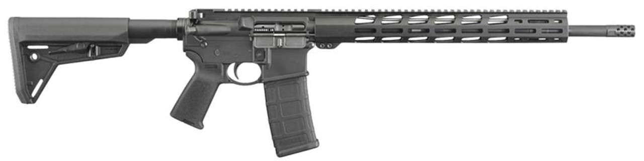 AR-556 MPR (Multi-Purpose Rifle) features an eighteen inch nitrided alloy steel barrel with rifle-length gas system, a 15 inch M-LOK free float handguard, the two-stage Ruger Elite 452 AR-Trigger. Magpul MOE grip and MOE SL collapsible buttstock on a mil-spec buffer tube. Flattop upper is constructed from aerospace-grade 7075-T6 aluminum; includes forward assist, dustcover and brass deflector. Type III hard coat anodized finish. Ruger muzzle brake with a radial port design. Threaded at 1/2-28 tpi. Includes one 30-round Magpul PMAG.