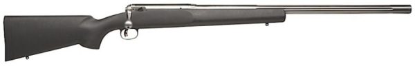 All Savage 12 Series Long Range Varmint single shot rifles feature AccuTrigger, oversize bolt handle, stainless barreled action, extra heavy free-floating button-rifled barrel, and swivel studs.