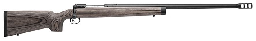 The Savage Arms 112 Magnum Target rifle features a grey wood laminate stock, a AccuTrigger, and a matte black carbon steel barrel.