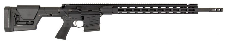 Savage Arms MSR 10 Long Range is built on a compact frame with a non-reciprocating side-charging handle. It has a Blackhawk AR Blaze two-stage target trigger, Magpul PRS adjustable buttstock, fulted, Melonite QPQ finish barrel, and free-float M-Lok handguard.
