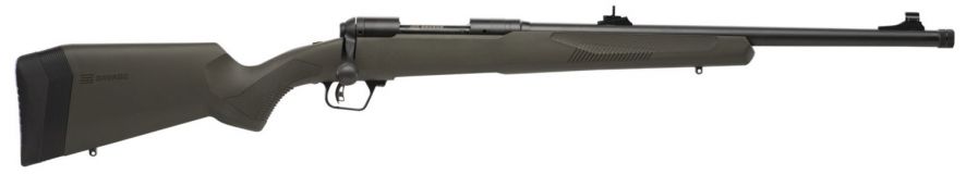 Savages 110 Hog Hunter model is built for any hard-hitting hunt while being form-fitting for any hunter. It features Savages AccuFit synthetic stock with five comb riser sizes for the perfect cheek-to-stock weld, four composite inserts to establish your unique length-of-pull, and AccuStock. The AccuStock consists of a rigid rail system firmly embedded in the stock throughout the foreend of the rifle. It also engages the action three dimensionally along its entire length. The 110 Hog Hunter also features AccuTrigger for flexibility, a threaded carbon steel barrel, adjustable iron sights, soft grip fore-end and pistol grip, and a detchable box magazine.