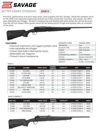 Savage 57387 Axis II Compact Bolt 7mm-08 Remington 20 4+1 Black Fixed Synthetic Stock Black Carbon Steel Receiver