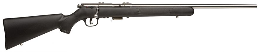 The 93 FSS features Savages AccuTrigger, a crisp, clean trigger that adjusts down to approximately 2.5 pounds. It has a satin-finished stainless steel barrel with a detachable box magazine set in a matte black synthetic stock detailed with cut checkering as well as a two-position safety immediately behind the bolt handle.