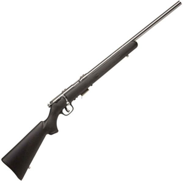 Savage 93 FVSS Matte Stainless/Black Bolt Action Rifle – 22 WMR (22 Mag) – 21in – The 93 FVSS features Savage’s AccuTrigger, a crisp, clean trigger that adjusts down to approximately 2.5 pounds. This model has a stainless steel barrel and a black matte synthetic stock with cut checkering and swivel studs. It also has a detachable box magazine and a two-position safety immediately behind the bolt handle at the right rear of the action.