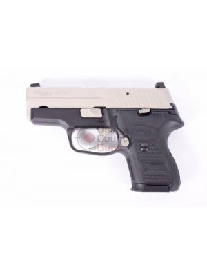 Despite its small size, the P224 maintains a double-stack magazine for a capacity of 10 rounds of .40S&W giving the P224 a decided advantage over most subcompact competitors. Newer model P229 magazines can also be used for an even greater round count. Full-size SIGLITE® Night Sights allow the P224 to deliver pinpoint accuracy, which can be a challenge in most subcompacts. The P224 accepts newer P229 magazines, allowing users to carry a full-size spare magazine as a backup to the flush-fit P224 magazine. Law enforcement officers will appreciate not having to carry separate magazines solely for their backup guns. The Nickel model sports a black hard coat anodize frame as a contrast to the nickel slide and controls as well as the Double-Action Kellerman™ (DAK) trigger. Custom Hogue® G-10 grips and SIGLITE Night Sights round out this package.