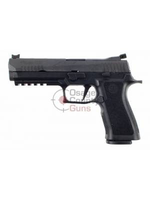 The P320 X-Five 9mm incorporates all of the most important features to maximize accuracy, shootability and ergonomics while maintaining the modularity of the standard P320 platform. The X-Series grip module is exclusive to this line and features a deeper trigger guard undercut, a higher back strap and an extended beavertail to ensure a higher grip for better recoil management. Like all X-Series P320s, the X-Five has the straight trigger that breaks at 90 degrees for an even better feeling pull. The 5″ bull barrel and lightened slide pair perfectly for match-grade accuracy and are equipped with Dawson Precision® Fiber Optic front and fully-adjustable rear sights. Additionally, the rear sight plate can be easily removed as a unit and replaced with a ROMEO1 optic, which means every P320 X-Five pistol is optics-ready right out of the box.