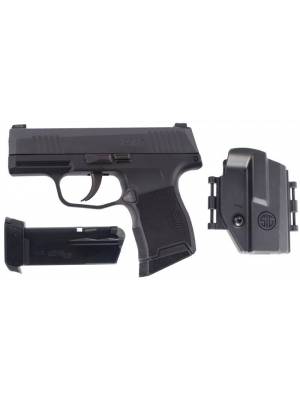 Introducing the game changing P365. Micro-compact everyday carry size with unprecedented 10+1 full-size capacity. The P365 is striker-fired, with the clean crisp trigger pull you expect from a SIG. Lightweight and easy to conceal, the P365 is chambered in 9mm and is rated for +P ammunition. Included standard are XRAY3 Day/Night sights, a 10-round flush fit magazine, and a 10-round extended magazine. This package also includes three (3) additional 12-Round magazines and a SIG inside/outside the waistband holster.