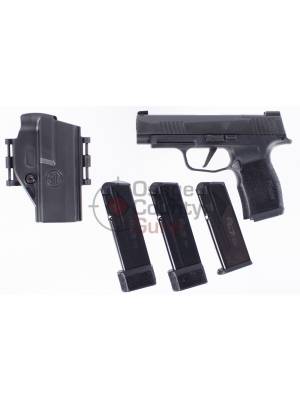 The P365 redefined what a concealed-carry pistol should be, now the new P365 XL is doing it again. The perfect balance of micro-compact concealability with full-size shootability the P365 XL packs 12 + 1 capacity in a micro-compact, highly concealable size yet maintains the comfort and shootability of a full-size pistol. The first P365 offered in the XSeries family, the XL comes standard with an extended slide, 3.7” barrel, and the brand new 365 XSeries grip module with extended beavertail and integrated magwell. The new slide and grip module only add about 1/2″ to the overall length and height of the micro-compact P365. It still maintains the crisp, clean P365 trigger pull, but with the “X” signature flat profile trigger that breaks at 90 degrees. Also standard are the signature XRay3 Day/Night sights with a rear sight plate assembly that allows direct mounting of the new SIG SAUER RomeoZero or the RMSc reflex optics. Never has so much versatility and capability been squeezed into such a perfectly concealable size.