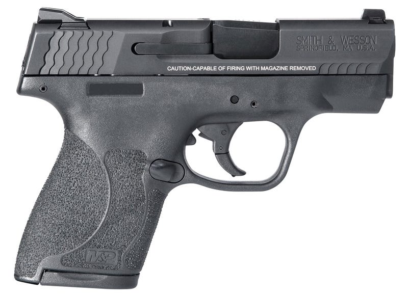 Smith & Wesson M&P pistols have a reinforced polymer chassis, superior ergonomics, and proven safety features. M&P’s patented take-down lever and sear deactivation systems allow for disassembly without pulling the trigger. The M&P Shield is easy to conceal, offering professional grade features with simple operation and reliable performance day or night. It puts the power and features of full sized M&P pistols into a slim, lightweight pistol the size of your hand. M&P M2.0 models feature aggressive grip texture for enhanced control, M&P M2.0 crisp trigger with lighter trigger pull, and a tactile and audible trigger reset. The stainless steel barrel and slide have an Armornite corrosion-resistant finish. This model has a black frame and slide finish, thumb safety, and 3-dot sights. It includes one 7-round magazine and one 8-round extended grip magazine.